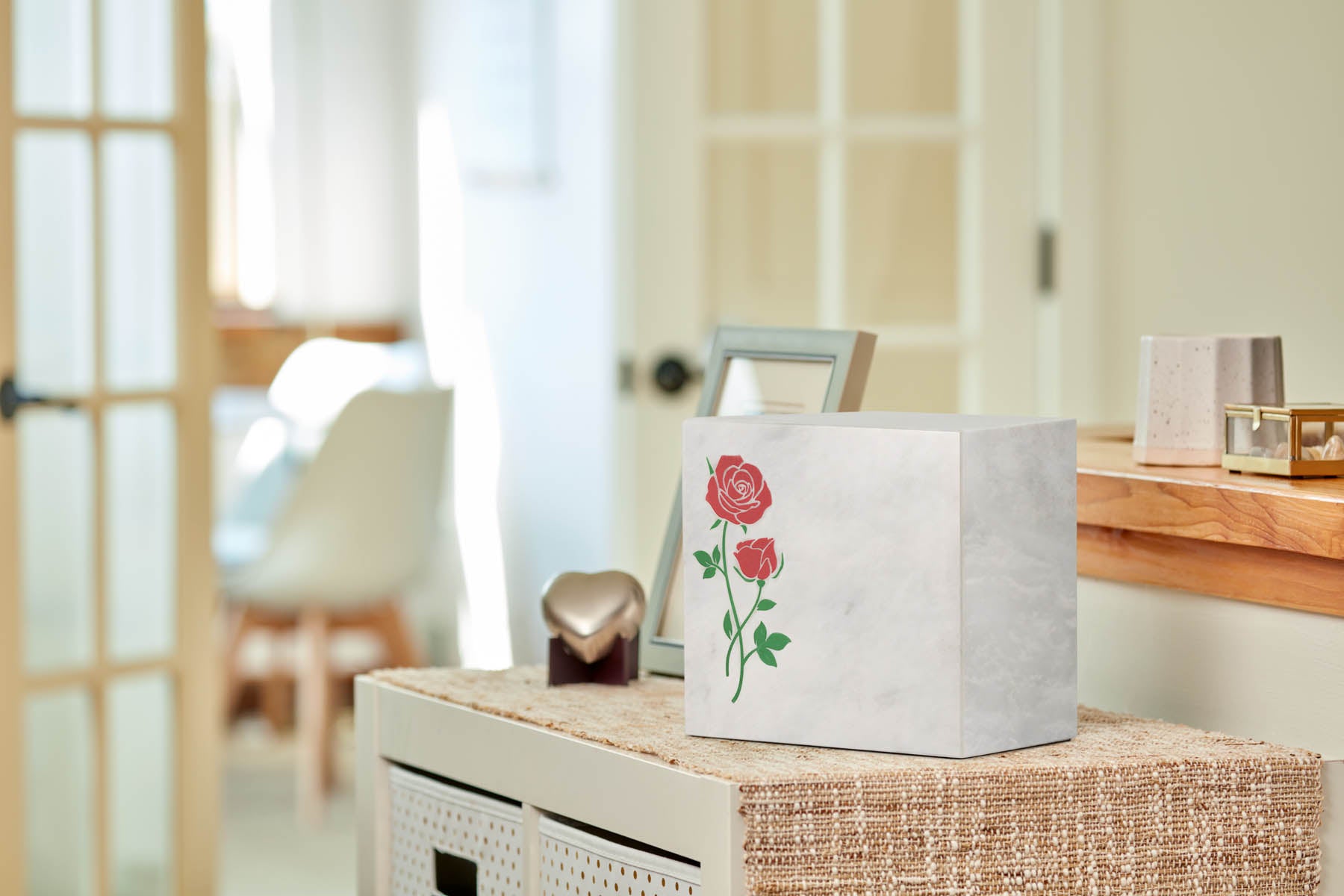 This Tailored Tribute urn carries a stunning design of red roses giving it a multidimensional look without disrupting the smooth finish. Bring a deep sense of peace, love and the everlasting connection shared with your loved one with this beautiful, personalized urn.