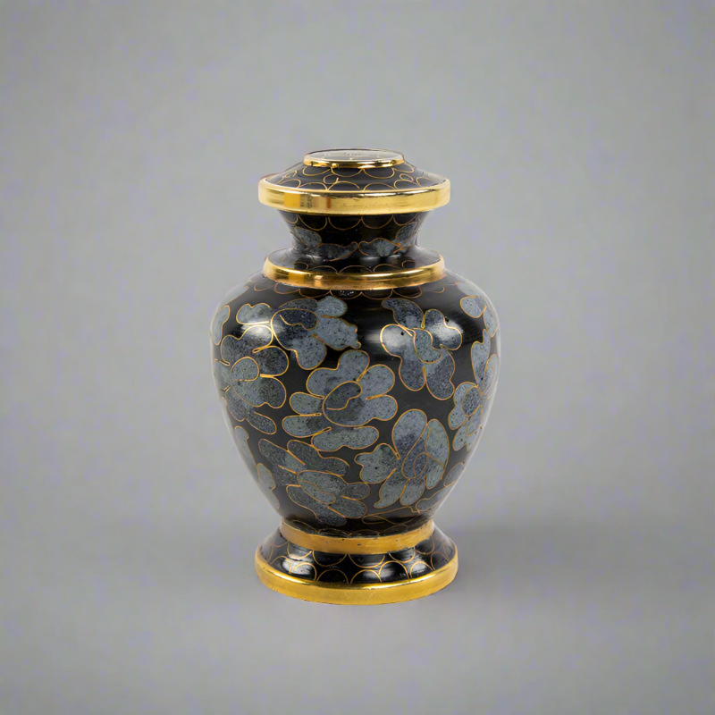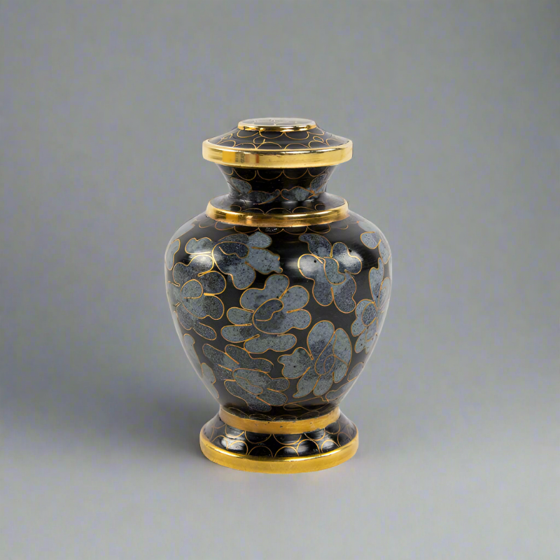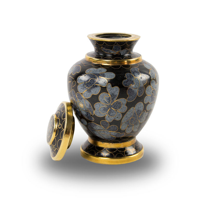 The Essence Slate Keepsake Urn carries with it an air of sophistication and beauty. The immense artisan skill clearly shines through. Thanks to the cloisonné art form the abstract floral design can have the form that it does, reminiscent of a field of dark flowers illuminated by the midnight moon. Let this keepsake for ashes bring you comfort and put a smile on your face when it catches your eye.