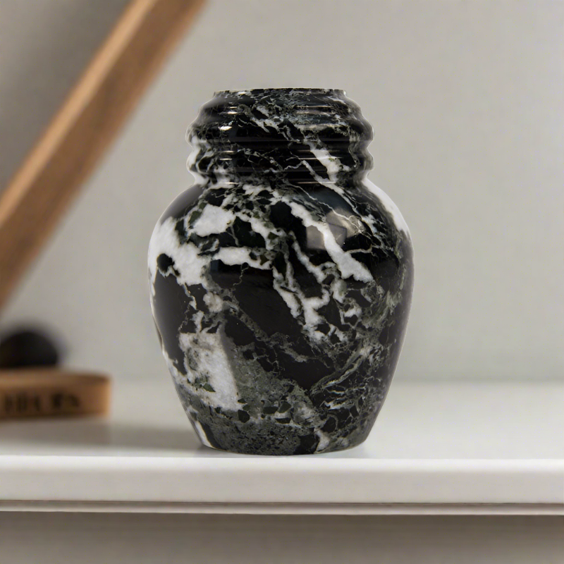 The OneWorld Memorials Noire Marble Keepsake Urn delivers a timelessly classic shape. The natural beauty of marble has been used for the most important items for centuries, and this keepsake urn consists of black marble with white streaks. Add customized engraving for a more personal touch today.