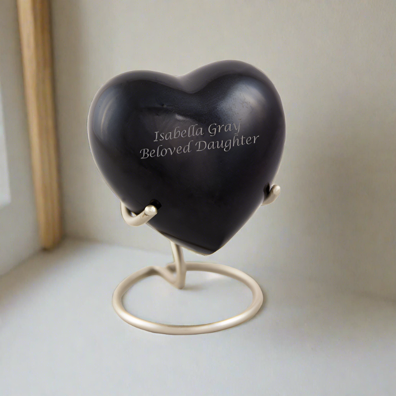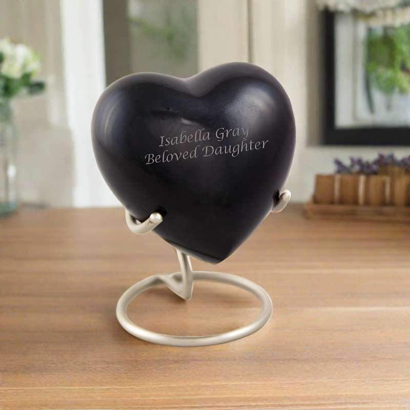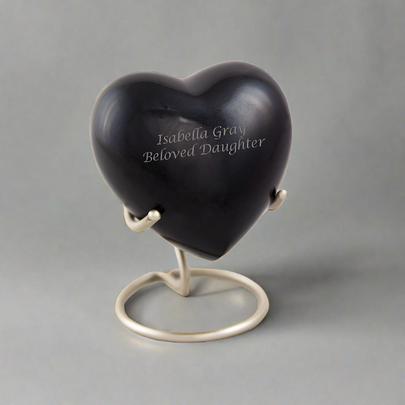 The Satori Onyx Heart Keepsake Urn offers a beautiful way to commemorate a loved one. Its' deep, rich onyx color in the urn is a beautiful symbol of your loved one’s life well lived. Let it keep you comfort in these hard times and accompany you on your journey forward whilst fondly remembering the past.