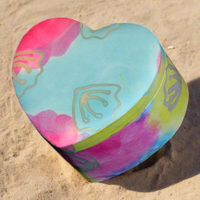 The eco-friendly material of the Biodegradable Earth Pet Urn in Tie Dye will completely biodegrade underground, and offers a thoughtful option when seeking a green urn for ashes. Heart-shaped pretty urns like these offer a bright and uplifting way to memorialize a loved one. This lovely tie dye urn is handcrafted from the bark of the mulberry tree, which symbolizes patience and wisdom.