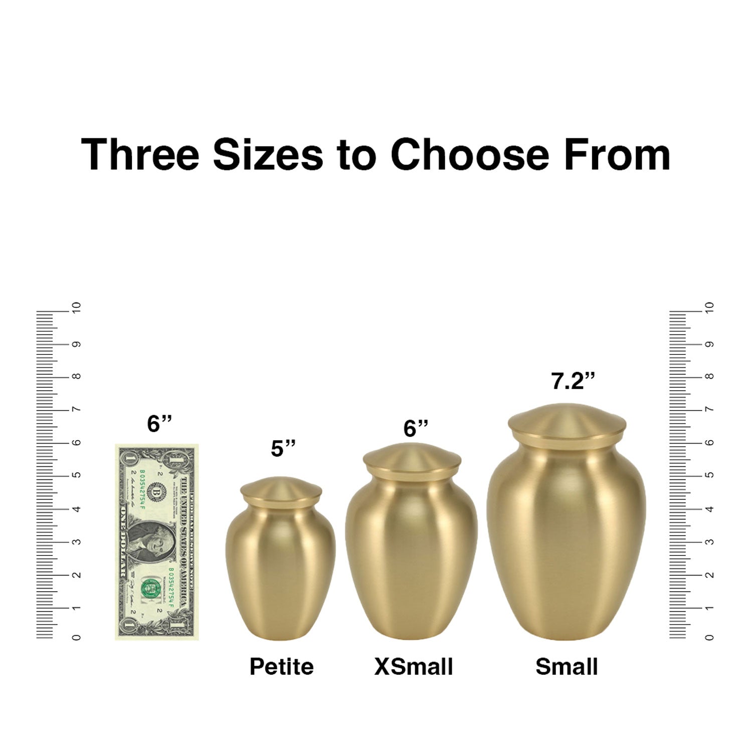 Urns are sold by size, measured by the amount of ashes that each urn holds in cubic inches. One pound of human or pet weight equals one cubic inch of remains.Therefore, if your loved one weighed 150 pounds you will need an urn that will hold at least 150 cubic inches. Standard individual cremation urns are designed to hold 200 cubic inches of remains. The size of each urn in cubic inches is listed with the item’s description. Use the filters on the left of our collections page to refine your results based on weight.