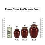 Urns are sold by size, measured by the amount of ashes that each urn holds in cubic inches. One pound of human or pet weight equals one cubic inch of remains.Therefore, if your loved one weighed 150 pounds you will need an urn that will hold at least 150 cubic inches. Standard individual cremation urns are designed to hold 200 cubic inches of remains. The size of each urn in cubic inches is listed with the item’s description. Use the filters on the left of our collections page to refine your results based on weight.