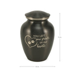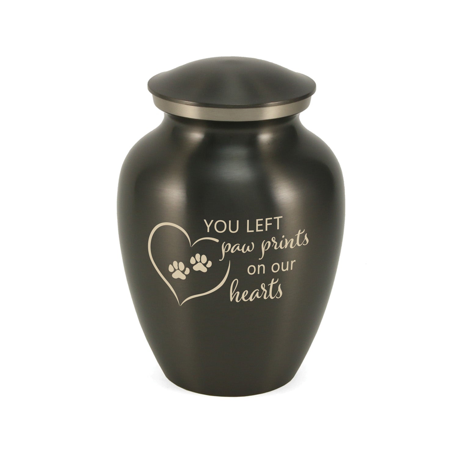 This Tailored Tribute pet urn carries a stunning design of a heart with 'You Left Paw Prints' messaging to give it a multidimensional look without disrupting the smooth finish. Bring a deep sense of peace, love and the everlasting connection shared with your beloved pet with this beautiful, personalized urn.