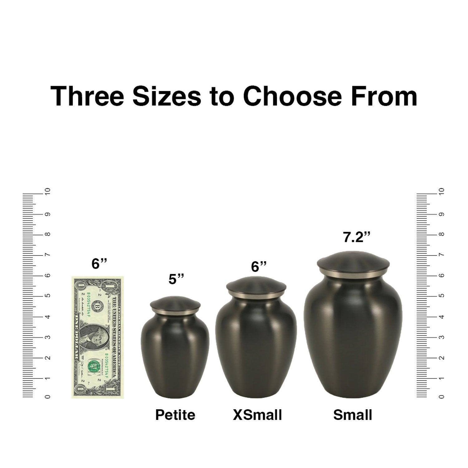 Urns are sold by size, measured by the amount of ashes that each urn holds in cubic inches. One pound of human or pet weight equals one cubic inch of remains.Therefore, if your loved one weighed 150 pounds you will need an urn that will hold at least 150 cubic inches. Standard individual cremation urns are designed to hold 200 cubic inches of remains. The size of each urn in cubic inches is listed with the item’s description. Use the filters on the left of our collections page to refine your results based on weight.