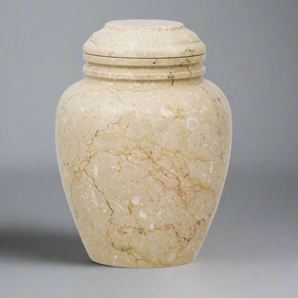 The Elliptical Alluvium Marble Cremation Urn in Large does not demand attention, however, when it gets someone’s attention, it will not lose it. The soft earth colored tones give the marble a natural character, that your loved one may have shared. We are all children of the Earth, so it is fitting that we all return to it eventually, potentially in the embrace of this marble cremation urn.