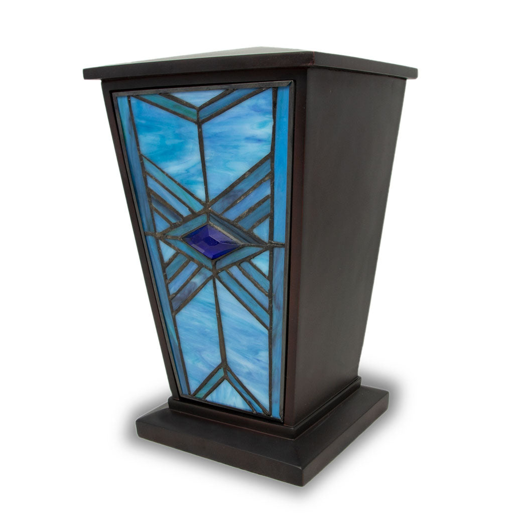 Indigo Mission Style Stained Glass Cremation Urn