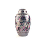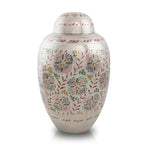 The OneWorld Memorials Lattice Cremation Urn In Large provides a meaningful way to share ashes. A stylized flower growing within a heart: powerful symbols of love and natural beauty. Colorful branches swirl around the heart's perimeter, making this urn a fitting tribute to a loved one.