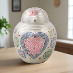 Use the beautifully designed Lotus Blossom Pet Urn in Small to give you feelings of joy every time you see it, remembering a beloved pet. This traditionally shaped pet cremation urn is hand-engraved with an eye-catching lotus flower in front of a heart shape etched into the side of the urn.