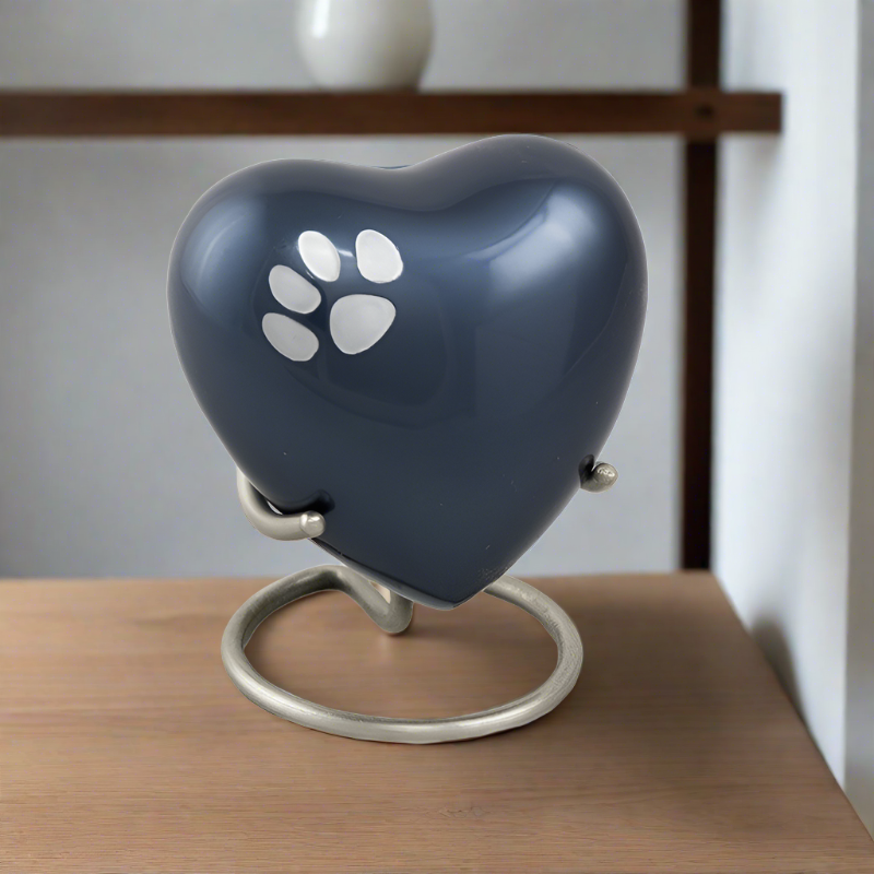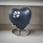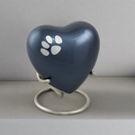 The Odyssey Midnight Blue Pet Paw Heart Keepsake is a perfect option for keeping a small bit of your pet's ashes on display. Let the years of memories and laughter bring you comfort as you gaze upon the rich slate grey design of this urn. Add engraving for a personal touch today.