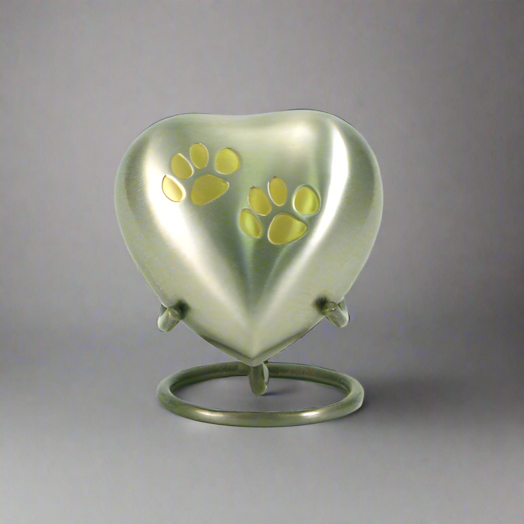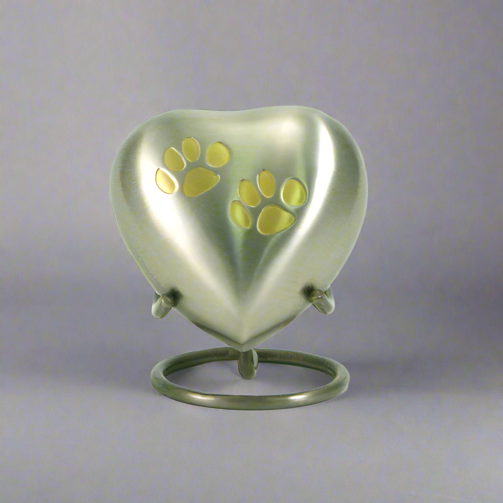 The Odyssey Pewter Pet Paw Heart Keepsake is a perfect option for keeping a small bit of your pet's ashes on display. Let the years of memories and laughter bring you comfort as you gaze upon the rich slate grey design of this urn. Add engraving for a personal touch today.