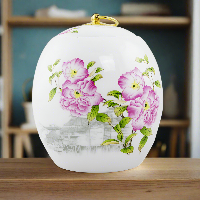 • Elegant, peony-themed ceramic urns for ashes for adults