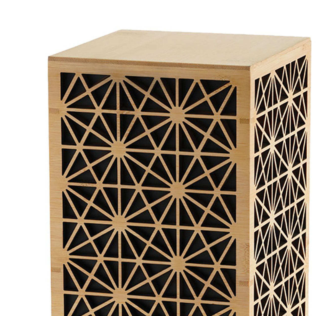 The Sonata Cremation Urn in Large features a stunning contemporary geometric design. Crafted with natural bamboo and contrasting matte black medium-density fiberboard, it is both elegant and versatile. This urn is ideal for home display, complementing various décor styles. It is suitable for alkaline hydrolysis or for holding additional mementos. Honor the life and legacy of a loved one with beautiful custom personalization.