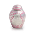 The Teddy Bear Cremation Urn for Infant in Pink is elegant and unique, hand-crafted from high quality brass. Blue paint is applied to the outlines and dries to add a matte element. Store this cremation urn in a place that best memorializes your loved one. Add an engravable base for a more personal touch.