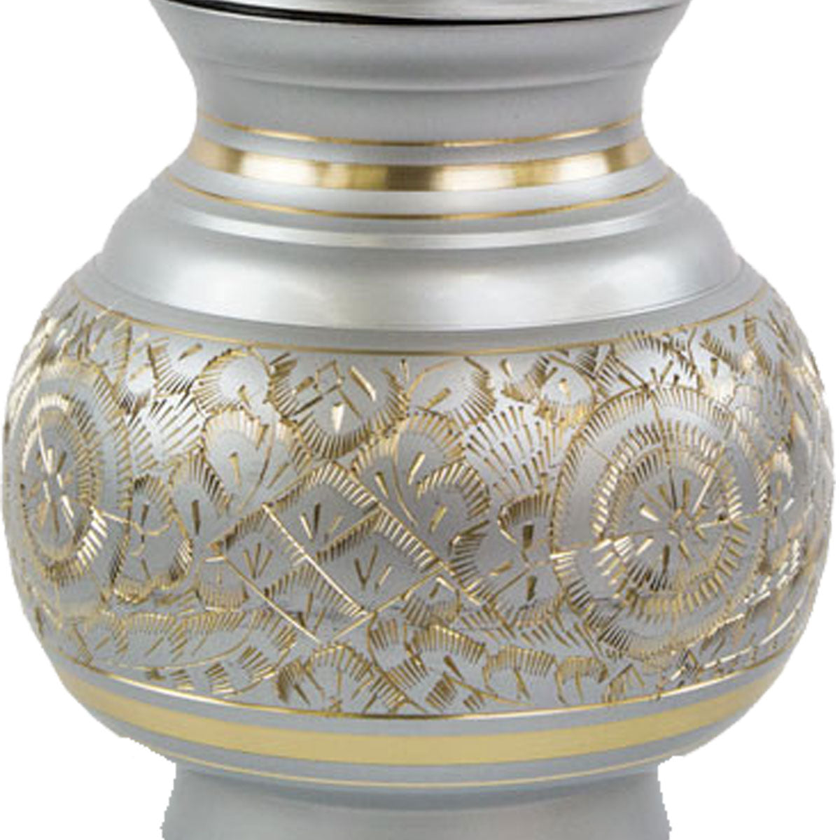 The Timeless Pewter Pet Cremation Urn in Extra Small is unmatched among pet urns, providing a pewter finish over brass. This classic keepsake comes in an everlasting pewter shade with brass undertones for a two-toned effect. Add an engravable pendant to forever memorialize your beloved friend.