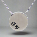 The Paw Prints Cremation Necklace in Pewter is a wonderful way to carry your beloved pet cremains with you. We can add up to three characters, which allows you to add your loved one’s initials.